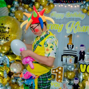 Sự xuất hiện cực kì đáng yêu của chú hề tạo hình bong bóng mang đến bầu không khi vui hơn trong buổi tiệc sinh nhật.