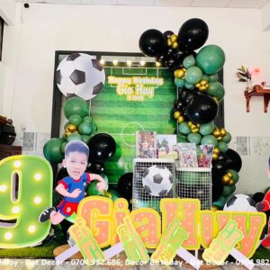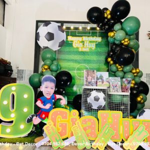 Trang trí sinh nhật cho bé Gia Huy chủ đề bóng đá bao gồm:
